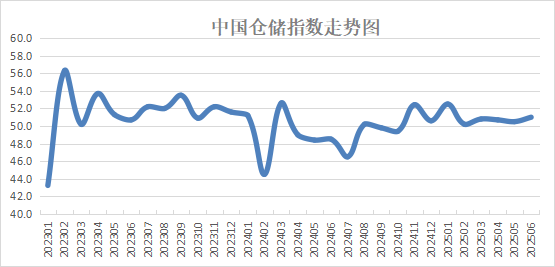 中国物流与采购联合会与中储发展股份有限公司联合调查的中国仓储指数,2025年6月份为51%,较上月上升0.5个百分点。