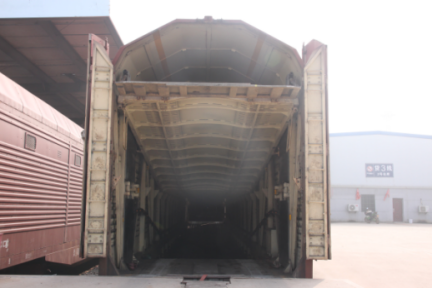 据了解,一辆这种型号的车厢可以装下8辆家用小汽车,一列火车可以编组35辆这样的车厢,如此一来,一趟就能运输汽车达280辆。而且,这种车厢更加方便装车和卸车,装卸车时,通过铁制斜梯从地面直通车厢,由工作开车直接驶入或倒出车厢,大大加快了装车进度。