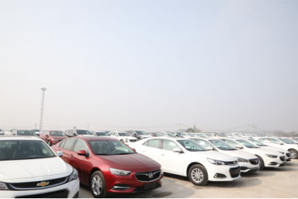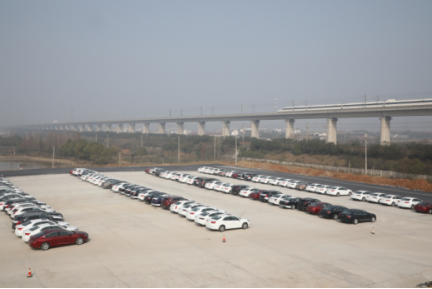 2019年1月28日,小年,向塘物流园货场里停放着各大品牌、各类式样的待运小汽车多达400辆,好似一场大型车展活动。