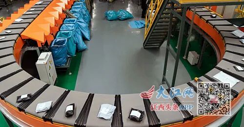 南昌国际邮件互换局快件中心正在分类投放快件。