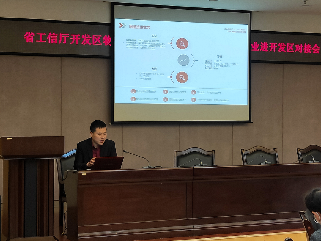 在听取企业建议后,作为全省唯一的物流信息化平台——省级物流公共信息平台,平台运营总监田永科为大家讲解、并汇报平台建设情况及意义。省级物流平台作为江西省唯一一个由省政府批准、省发改委认定的省级物流公共信息平台,有效的实现了,线上实时为物流企业提供电子商务一揽子解决方案,线下同时提供地面公路港综合配套服务,其整合全省物流信息、资源、数据,提升行业运行效率,降低企业成本,为企业的提供合法、合规的运输服务,确保货物的安全,提高运行效率,减少中间环节,加快信息的互通联动。平台自运行以来累计为10000余家工业企业提供了物流运输服务,为企业降低运输成本达15%,并有效的提高了企业的信息化程度,加快企业的产业转型及提档升级步伐。