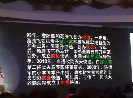 很多新晋物流人都以为申通、圆通、中通等快递都是“水火不容”的竞争关系,看看下面这些图片,才明白它们原来都是一家人开的,并且这一大家人成为了支撑中国电商发展的核心载体....你不服不行,马云都离不开他们,还得掏钱投资他们!